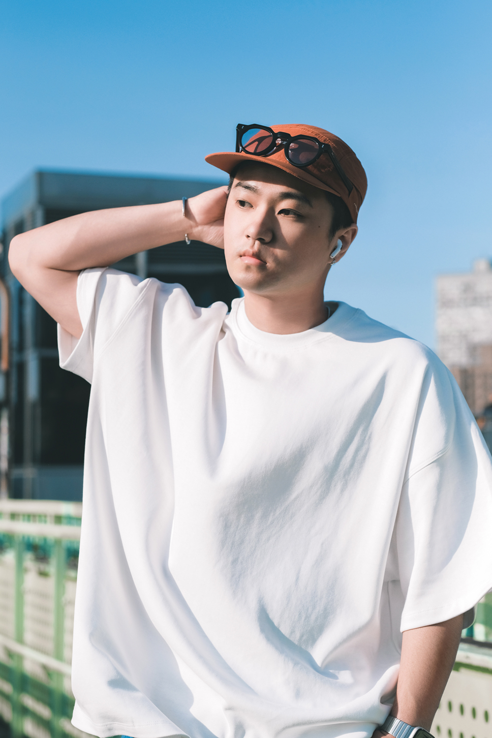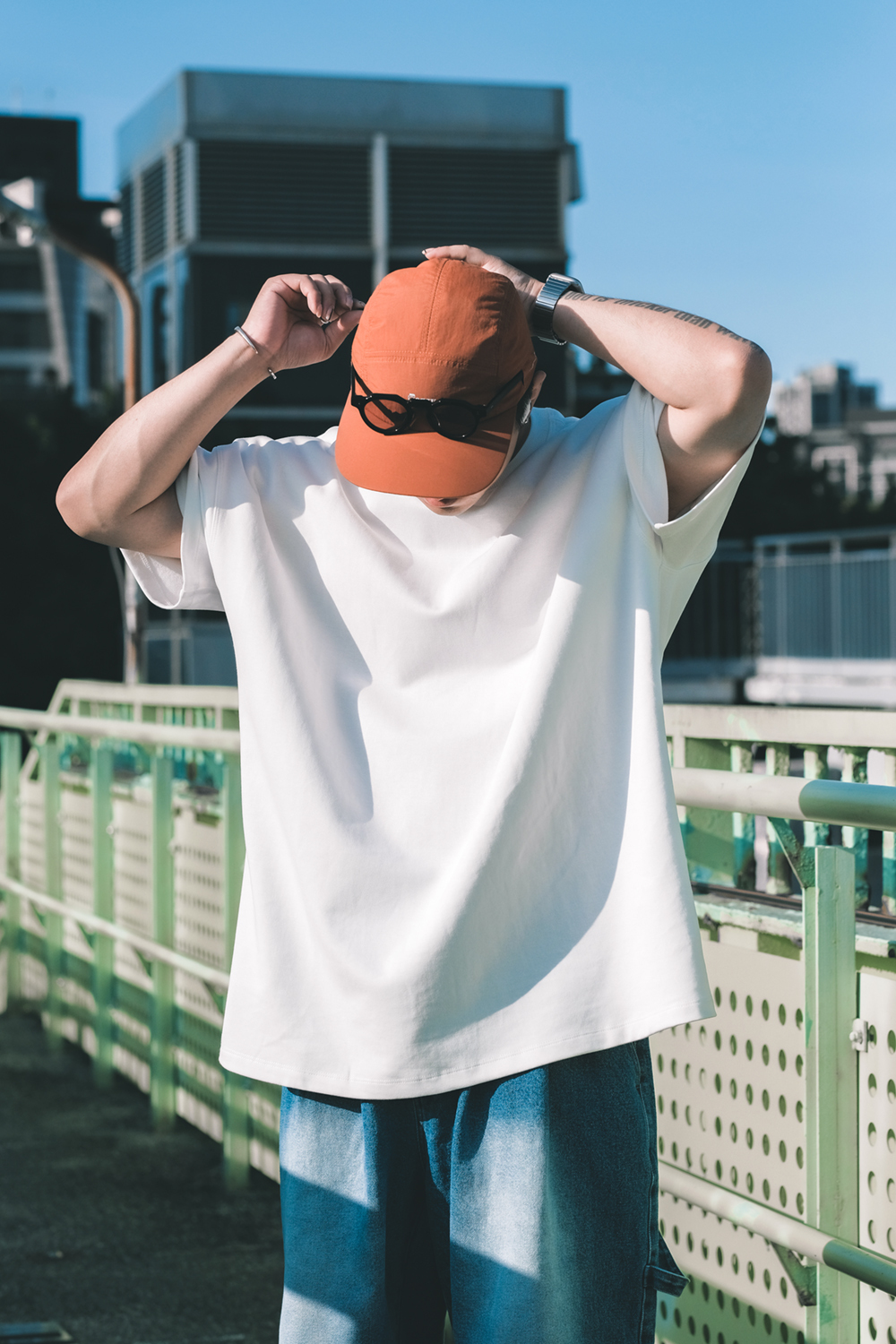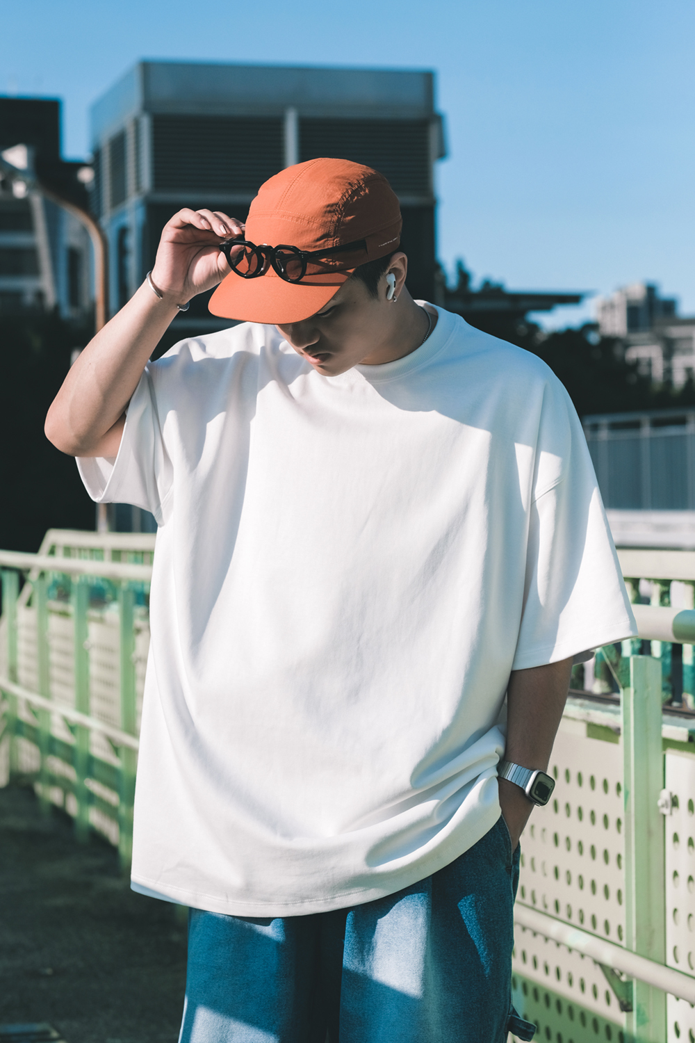空氣層曲線肩剪裁寬版短T