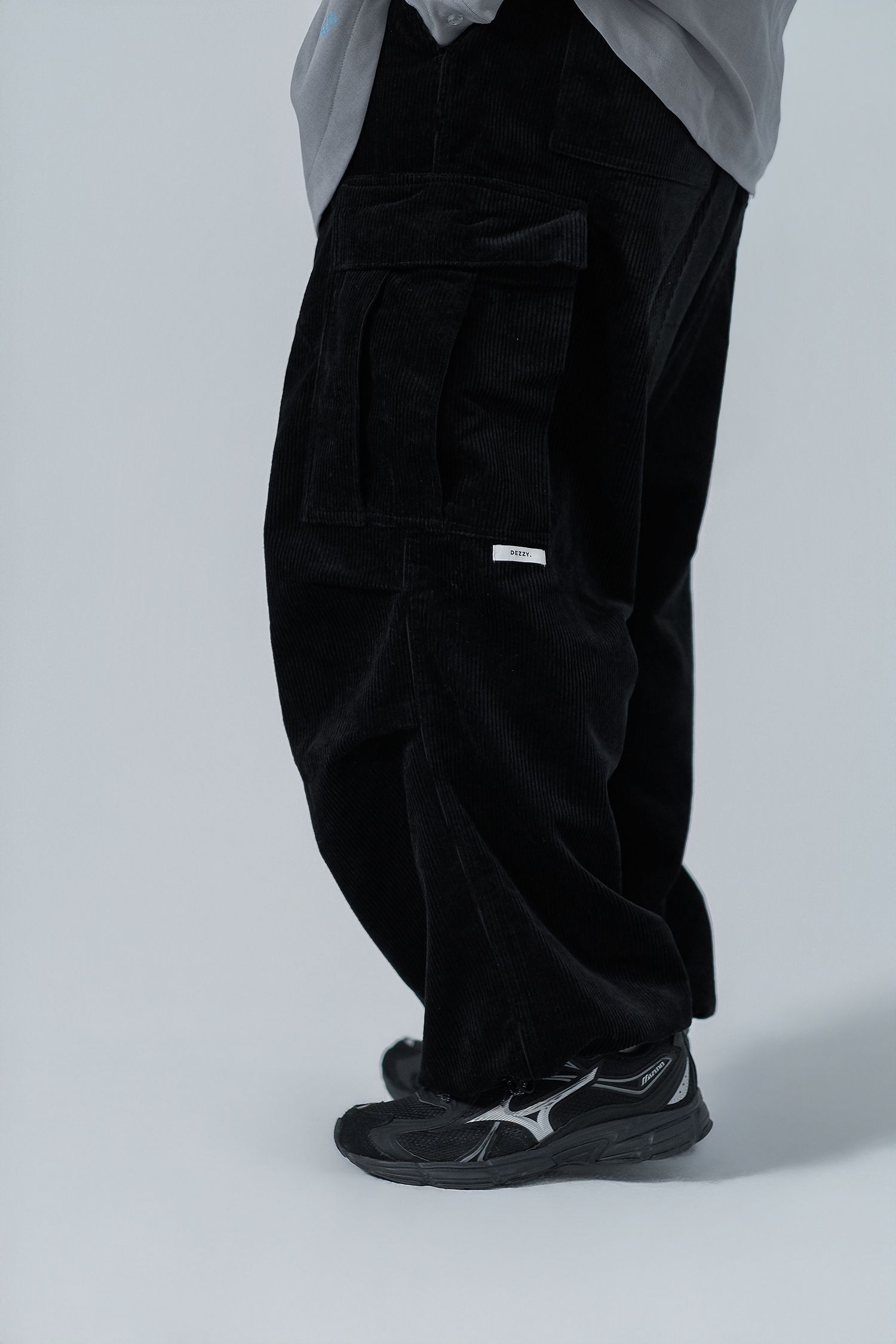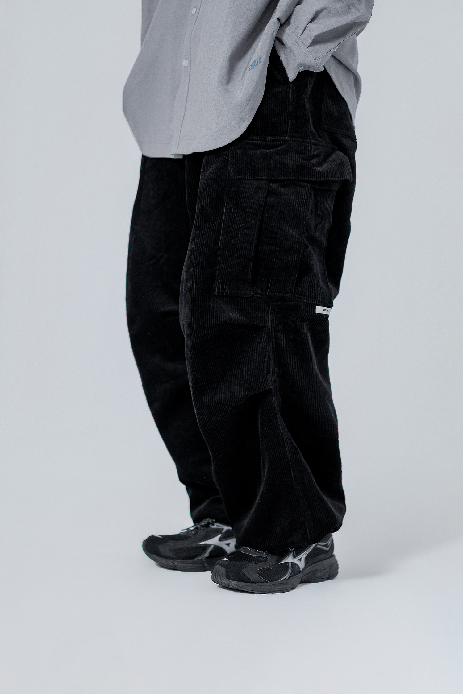 以冬季實穿為核心的寬版長褲,選用厚磅燈心絨面料製成,
