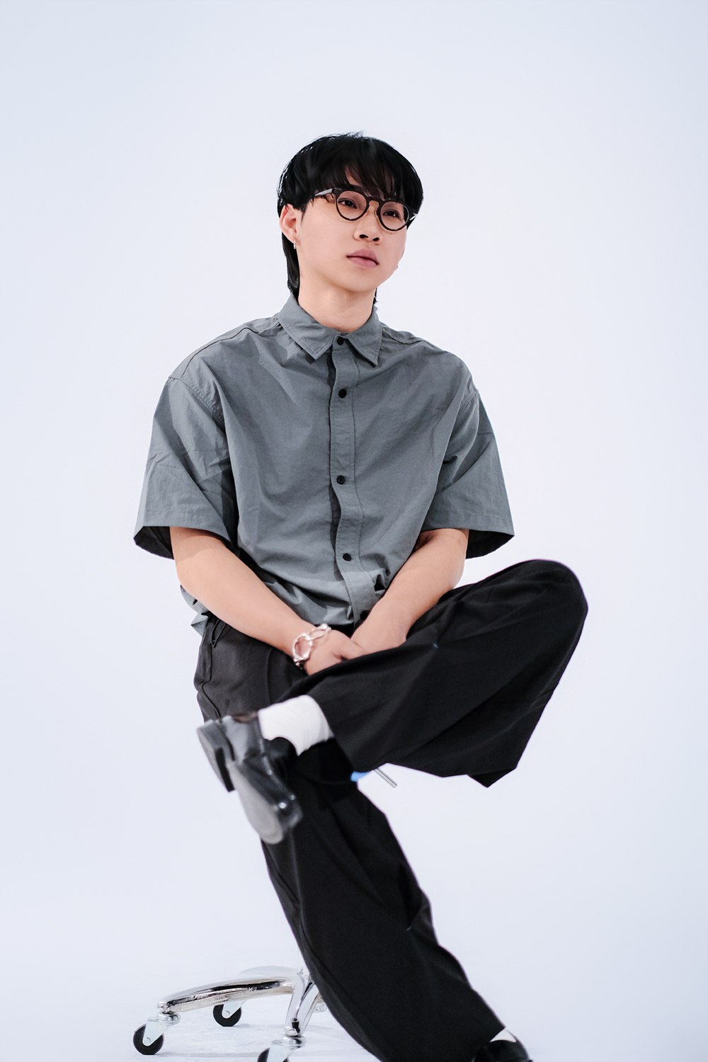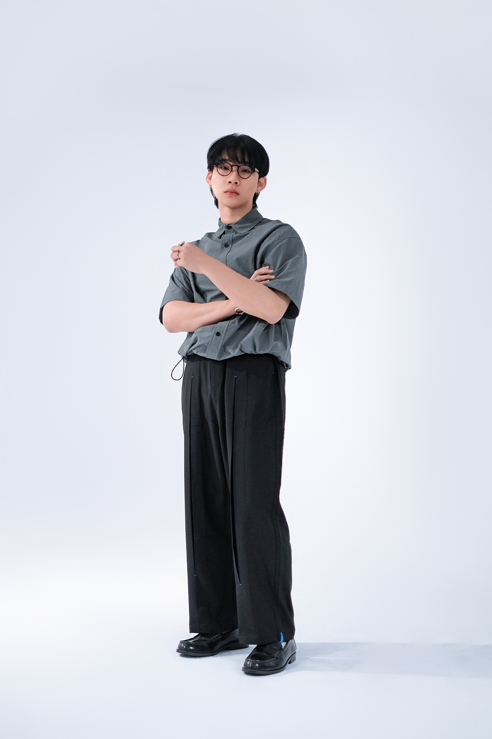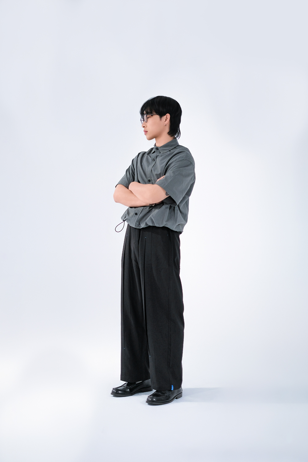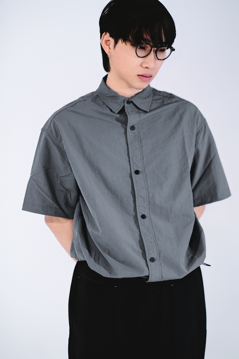 起皺感短袖襯衫